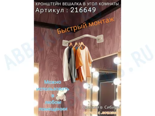 - Кронштейн для плечиков с одеждой, используется для установки в угол комнаты или к потолку.