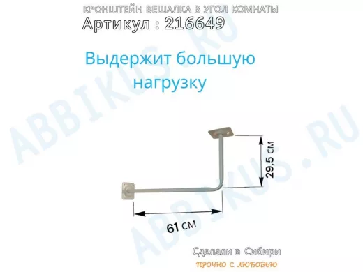 Заказать звонокКронштейн для плечиков с одеждой, вешалка в угол комнаты 60 х 29 см "ПРОСЕКИНО 216649" серый, 22мм