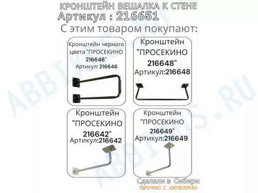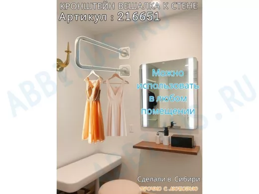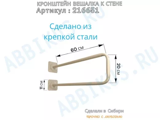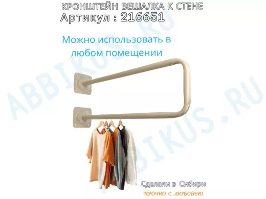 Заказать звонокКронштейн для плечиков с одеждой, вешалка к стене 60 х 20 см "ПРОСЕКИНО 216651" серый, 22мм