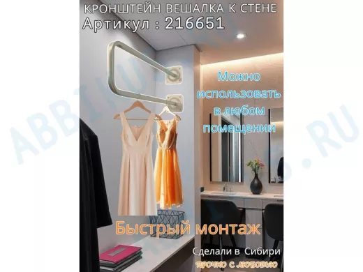 Кронштейн для плечиков с одеждой крепится в углу гардеробной или комнаты, также может крепиться к потолку и стене.