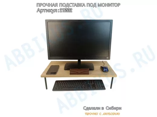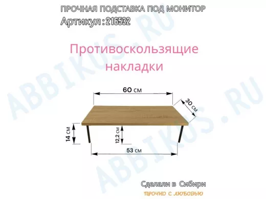 Заказать звонокПодставка под монитор на стол 60х30см высота 14см "ABBIKUS-216532" дуб сонома, черные ножки