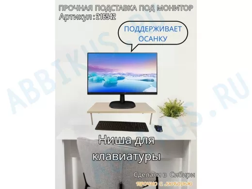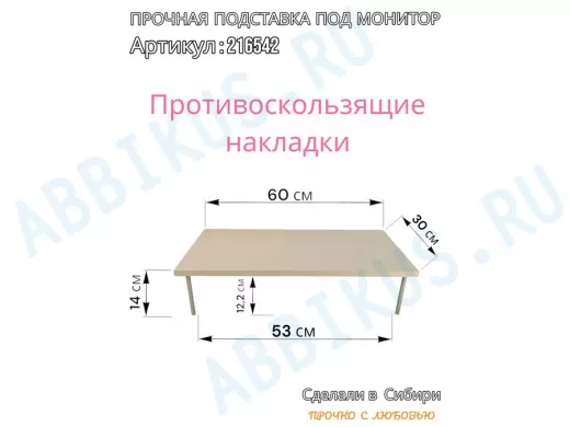 Заказать звонокПодставка под монитор на стол 60х30см высота 14см "ABBIKUS-216542" сосна выбеленная, серые ножки