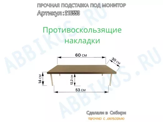 Заказать звонокПодставка под монитор на стол 60х30см высота 14см "ABBIKUS-216553" венге, серые ножки