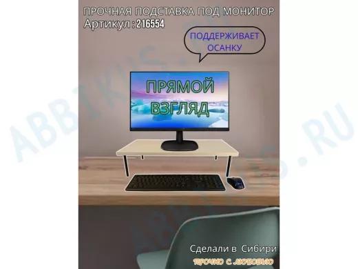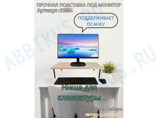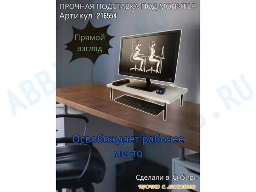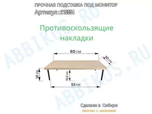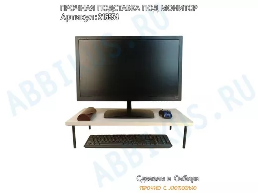 Заказать звонокПодставка под монитор на стол 60х30см высота 14см "ABBIKUS-216554" сосна выбеленная, черные ножки