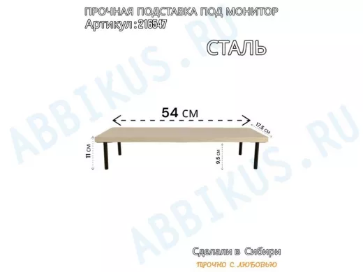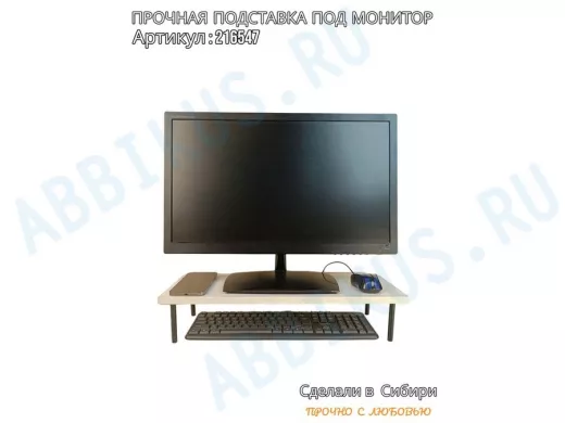Заказать звонокПодставка под монитор на стол 54х17,5см высота 11см, сосна выбеленая "ABBIKUS-216547" черные ножки