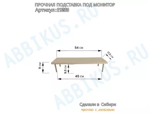 Заказать звонокПодставка под монитор на стол 54х17,5см высота 11см, сосна выбеленная "ABBIKUS-216560" серые ножки
