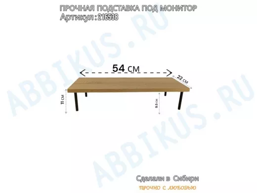 Заказать звонокПодставка под монитор на стол 54х22см высота 11см, дуб сонома "ABBIKUS-216538" черные ножки