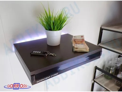 Заказать звонокПарящая полка скрытого крепления с подсветкой и тайником, черный "SVORKAMAX 212862" 30х40 см, венге
