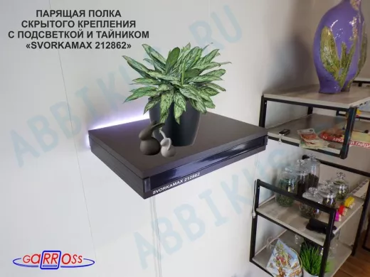 Парящая полка скрытого крепления с подсветкой и тайником, черный "SVORKAMAX 212862" 30х40 см, венге