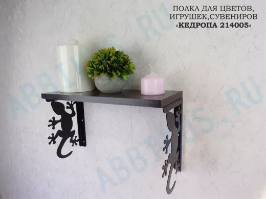 Заказать звонокПолка для цветов, игрушек,сувениров "КЕДРОПА-214005 гекон" размер 15х40х24 см, венге
