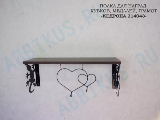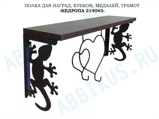 Заказать звонокПолка для наград, кубков, медалей, грамот "КЕДРОПА-214043 гекон" размер 15х60х24 см, венге с сердцем