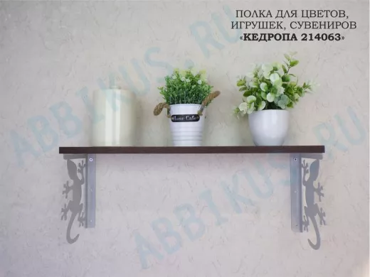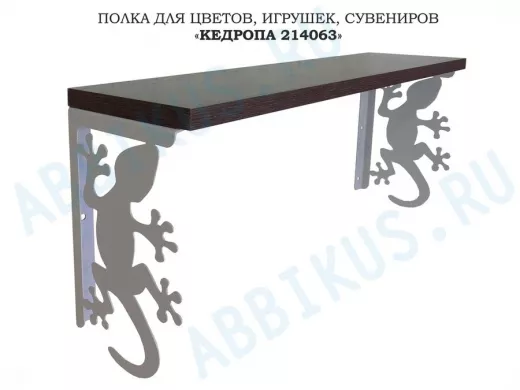 Заказать звонокПолка для цветов, игрушек,сувениров "КЕДРОПА-214063 гекон" размер 15х60х24 см, серый, венге