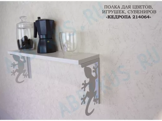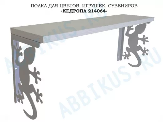 Заказать звонокПолка для цветов, игрушек,сувениров "КЕДРОПА-214064 гекон" размер 15х60х24 см, серый, сосна