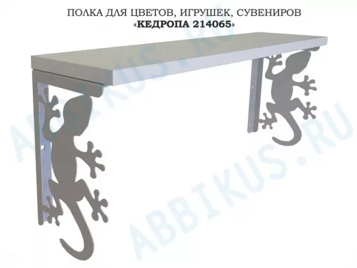 Заказать звонокПолка для цветов, игрушек,сувениров "КЕДРОПА-214065 гекон" размер 15х60х24 см, серый, белый шагрань