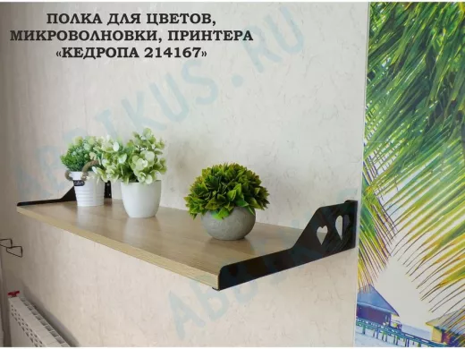 Заказать звонокПолка для цветов, микроволновки, принтера "КЕДРОПА-214167" размер 90х30х10 см, дуб сонома, сердце