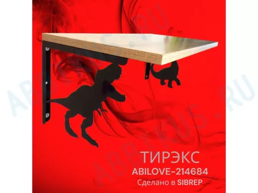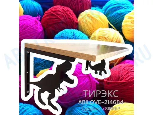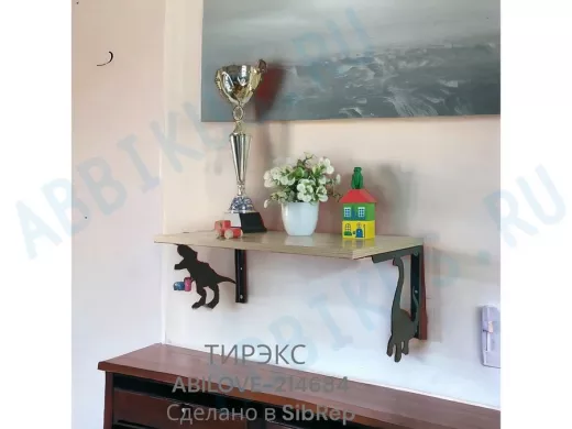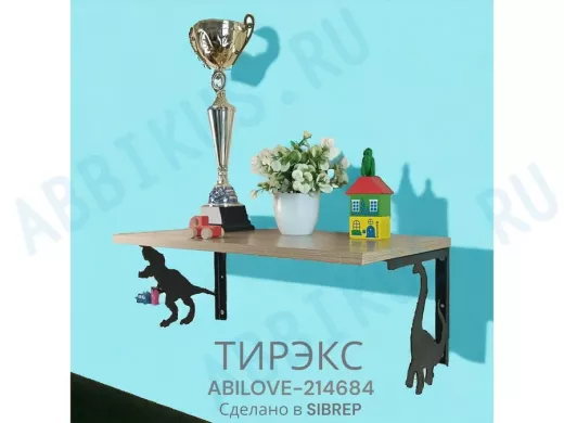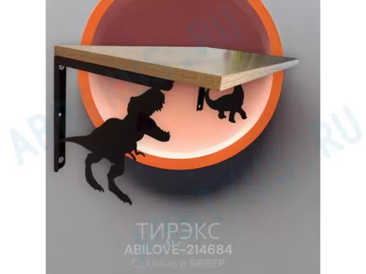 Заказать звонокПолка с динозаврами "ТИРЭКС ABILOVE-214684" для конструкторов, машинок, дуб сонома, 30х60см