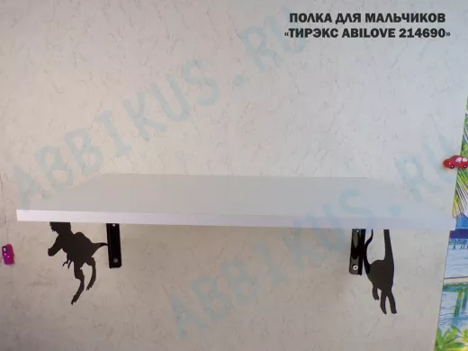 Заказать звонокПолка с динозаврами "ТИРЭКС ABILOVE-214690" для конструкторов, машинок, белый, 30х60см