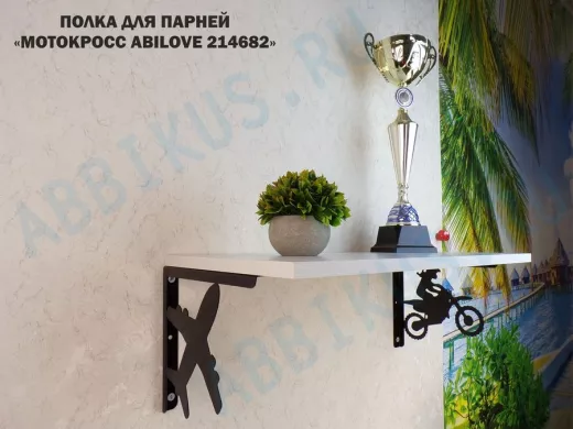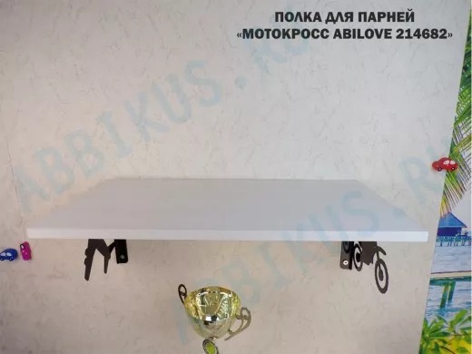 Полка для парней "МОТОКРОСС ABILOVE-214682" для кубков и аксессуаров, сосна выбеленная, 30х60см