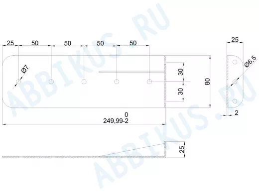 Заказать звонок"ПАПРИКА-250-L2-SL" кронштейн УСИЛЕННЫЙ под хром для скрытого крепления полок, 80х250х2мм,9отв.6,5мм