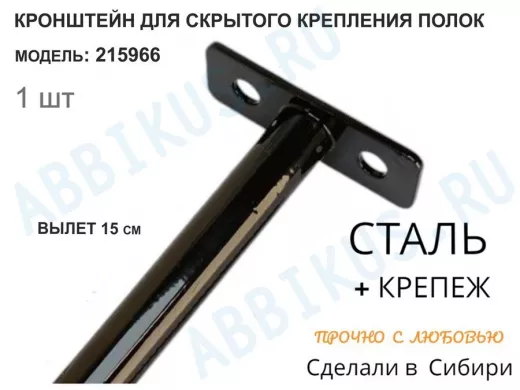 Заказать звонокКронштейн для скрытого крепления полок,12х150мм, черный, в наборе 1шт "SVORKAMAX-215966" без полки