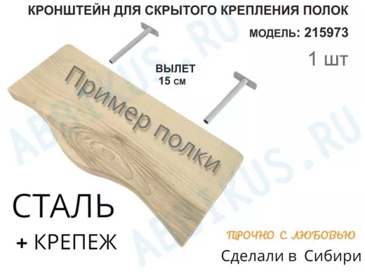 - Кронштейн предназначен для скрытого крепления полок, изготовленных из различных материалов: МДФ, ДСП, дерево, пластик.