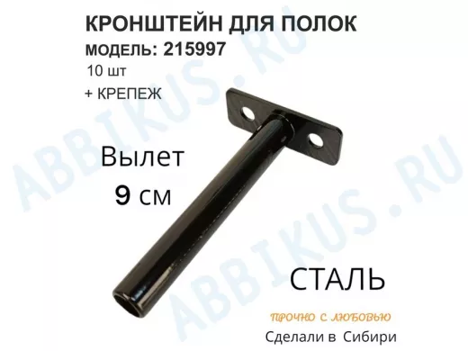 Заказать звонокКронштейн для скрытого крепления полок, 12х90мм, черный, в наборе 10шт "SVORKAMAX-215997" без полки