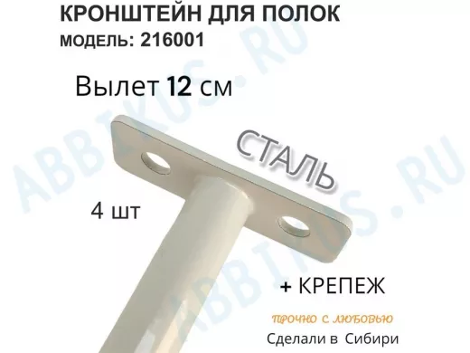 Заказать звонокКронштейн для скрытого крепления полок,12х120мм, серый, в наборе 4шт "SVORKAMAX-216001" без полки