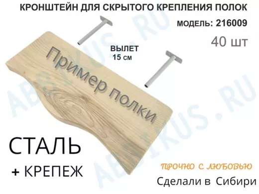 - Кронштейн предназначен для скрытого крепления полок, изготовленных из различных материалов: МДФ, ДСП, дерево, пластик.