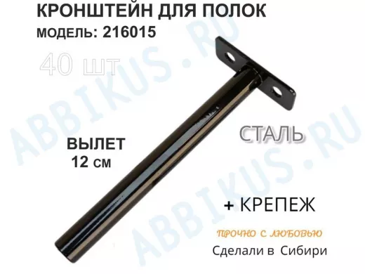 Кронштейн для скрытого крепления полок,12х120мм, черный, в наборе 40шт "SVORKAMAX-216015" без полки