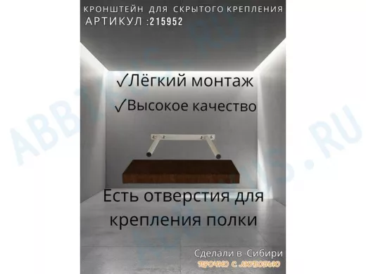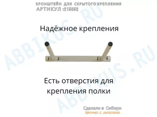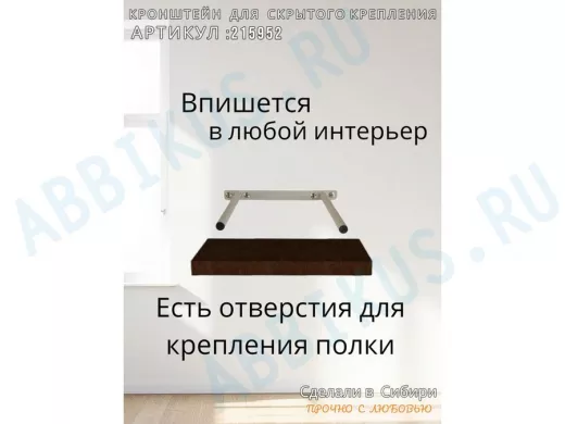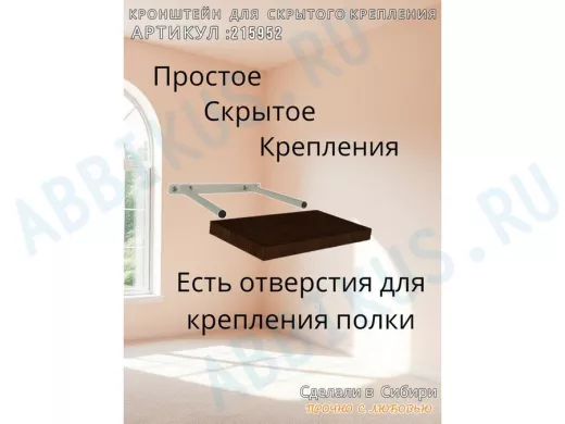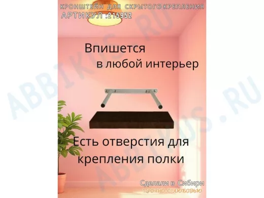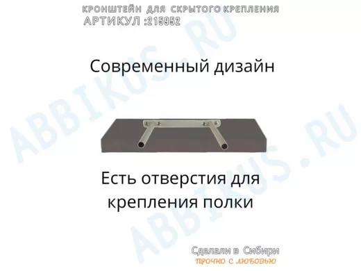- Кронштейн предназначен для скрытого крепления полок, изготовленных из различных материалов: МДФ, ДСП, дерево, пластик.