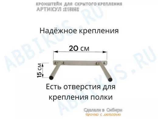 Заказать звонокКронштейн для скрытого крепления полок, 2х15см с отверстием, серый, в наборе 1шт "SVORKAMAX-215952"