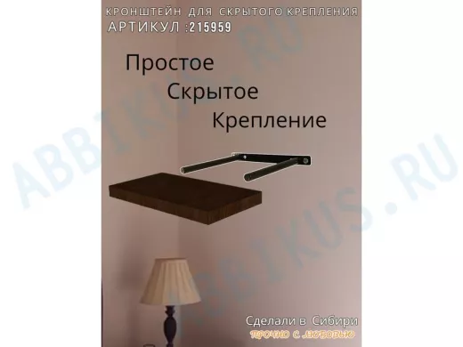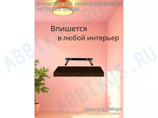 - Кронштейн предназначен для скрытого крепления полок, изготовленных из различных материалов: МДФ, ДСП, дерево, пластик.