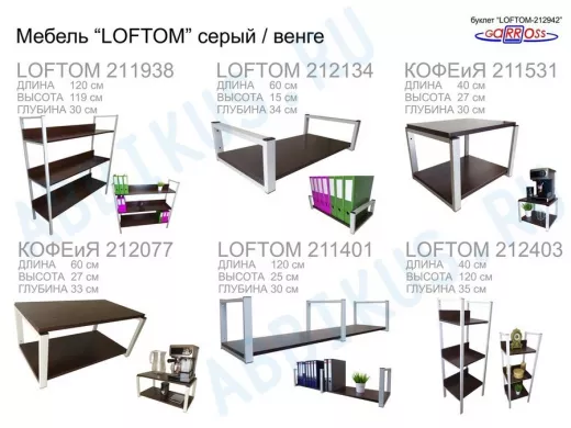 Заказать звонокСтолик приставной, серый, 55см "LOFTOM 212957" прикроватный стол журнальный с полкой, венге