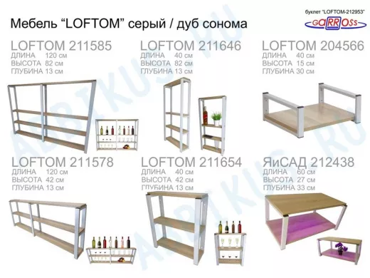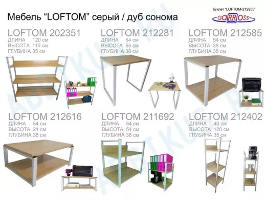 Заказать звонокСтолик приставной, серый, 55см "LOFTOM 212958" прикроватный стол журнальный с полкой, дуб