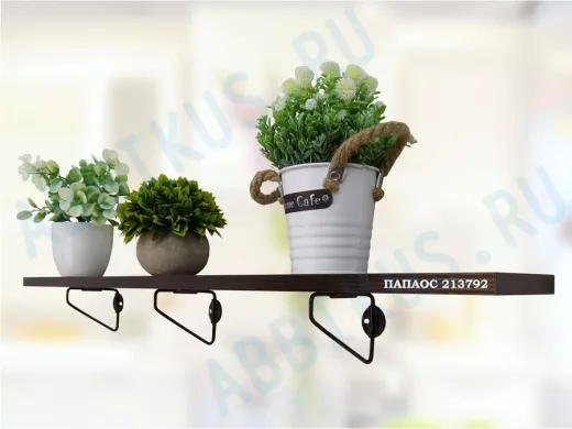 - Стильная полка в лофт-стиле. Простая конструкция изделия, позволяет добиться высокой надежности, а её минималистичный дизайн впишется абсолютно в любой интерьер. Полка идеально подойдет для косметики, сувениров, цветов и декоративных мелочей.