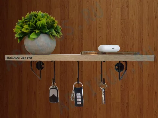 Заказать звонокКлючница, полка с крючками в прихожую 40х10 см, высота 9 см, черный "ПАПАОС 214172" дуб сонома