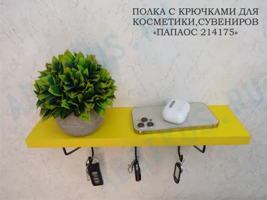 Заказать звонокКлючница, полка с крючками в прихожую 40х10 см, высота 9 см, черный "ПАПАОС 214175" желтый