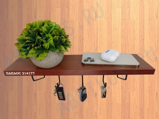 Заказать звонокКлючница, полка с крючками в прихожую 40х10 см, высота 9 см, черный "ПАПАОС 214177" орех