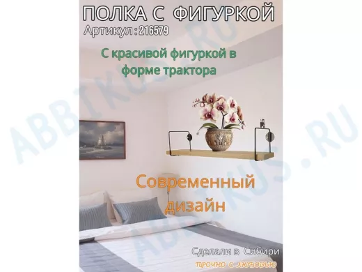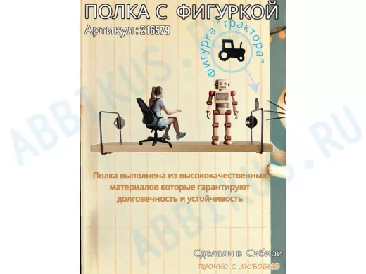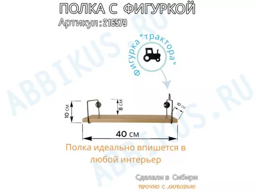 Заказать звонокПолка с фигуркой трактора "ABILOVE-216579" размер 10х40см ,черный ,дуб сонома