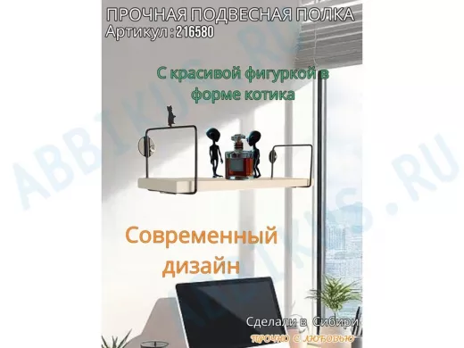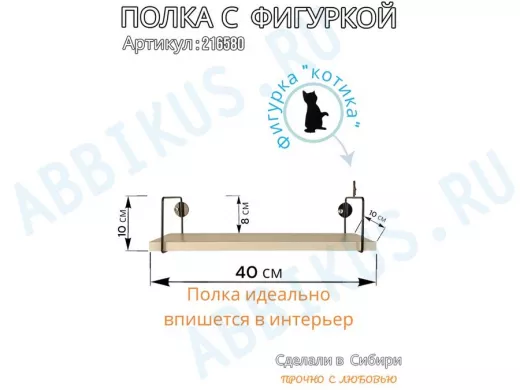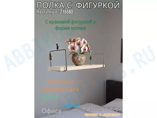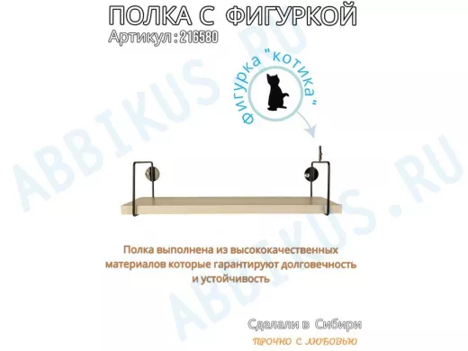 Заказать звонокПолка с фигуркой котика "ABILOVE-216580" размер 10х40см ,черный ,сосна выбеленная