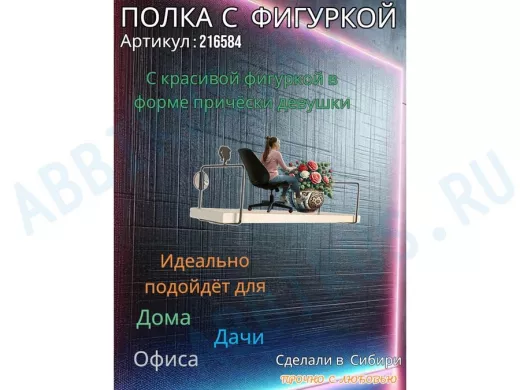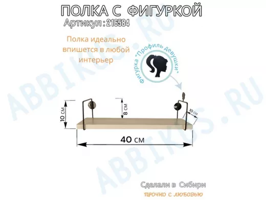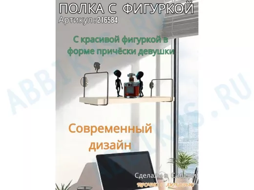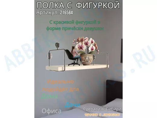 Заказать звонокПолка с фигуркой прически девушки "ABILOVE-216584" размер 10х40см ,черный ,сосна выбеленная