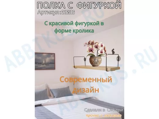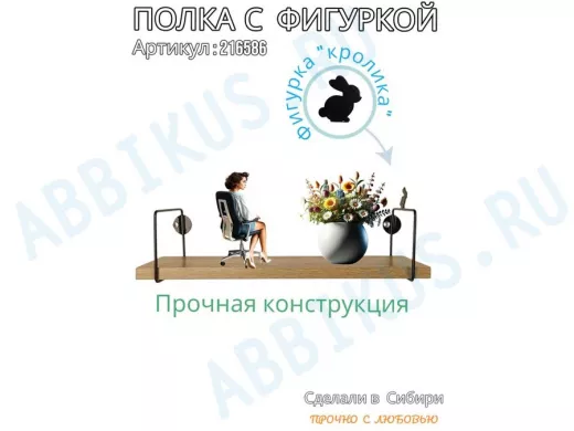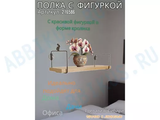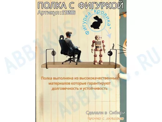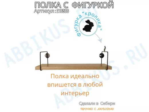 Заказать звонокПолка с фигуркой кролика "ABILOVE-216586" размер 10х40см ,черный ,дуб сонома