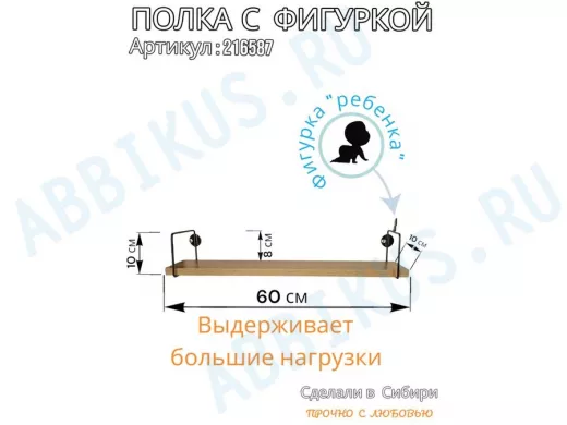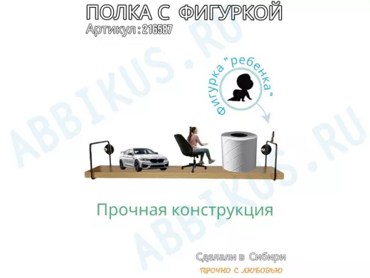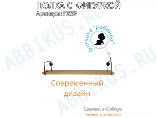 Заказать звонокПолка с фигуркой ребенка "ABILOVE-216587" размер 10х60см ,черный ,дуб сонома