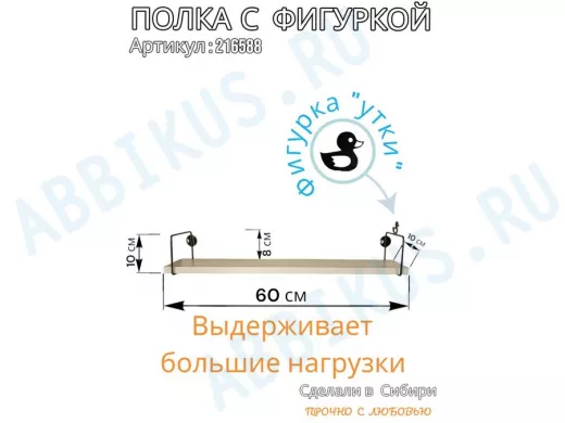 Заказать звонокПолка с фигуркой утки "ABILOVE-216588" размер 10х60см ,черный ,сосна выбеленная