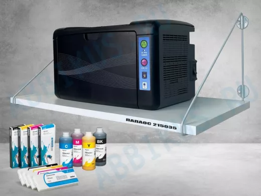 Полка надежно крепится к стене при помощи анкеров или шурупов с дюбелями, на ней можно разместить принтер, сканер, МФУ и многое другое