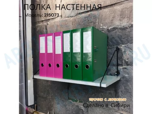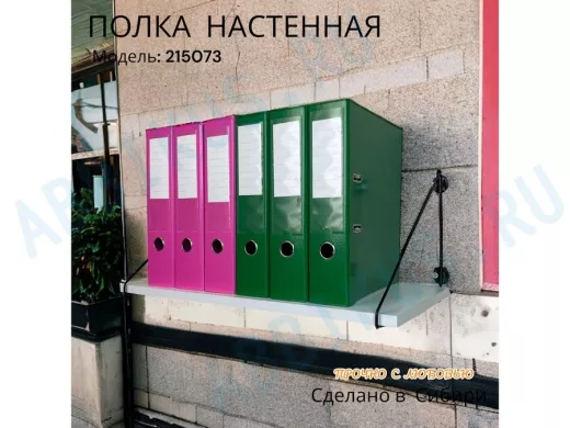 - Полка надежно крепится к стене при помощи анкеров или шурупов с дюбелями, на ней можно разместить папки, документы и многое другое