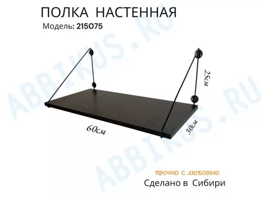 Заказать звонокПолка для книг "КНИГОКРЕП 215075" высота 26 см размер 60х30 см черный и венге