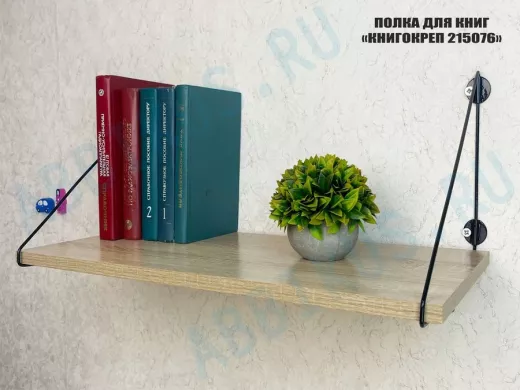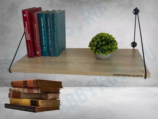 Заказать звонокПолка для книг "КНИГОКРЕП 215076" высота 26 см размер 60х30 см черный и дуб сонома