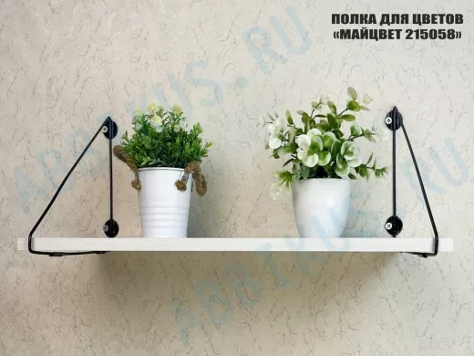 Полка выдержит тяжелые цветочные горшки с растениями, фоторамки, книги, сувениры и много другое.