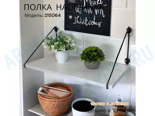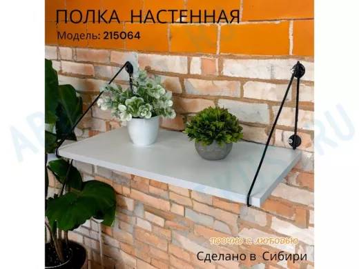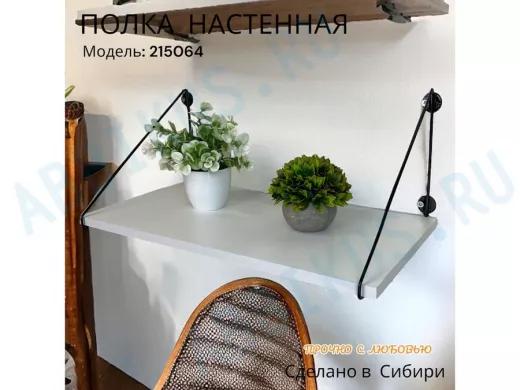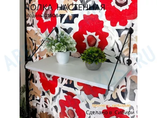 Полка выдержит тяжелые цветочные горшки с растениями, фоторамки, книги, сувениры и много другое.